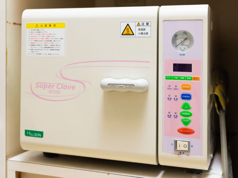 治療器具は使用後滅菌器にかけて、清潔に保管するのを習慣づけています。また、院内の換気や清掃も気が付いたスタッフがすすんで行い、常に清々しい雰囲気を維持できるよう努めています。